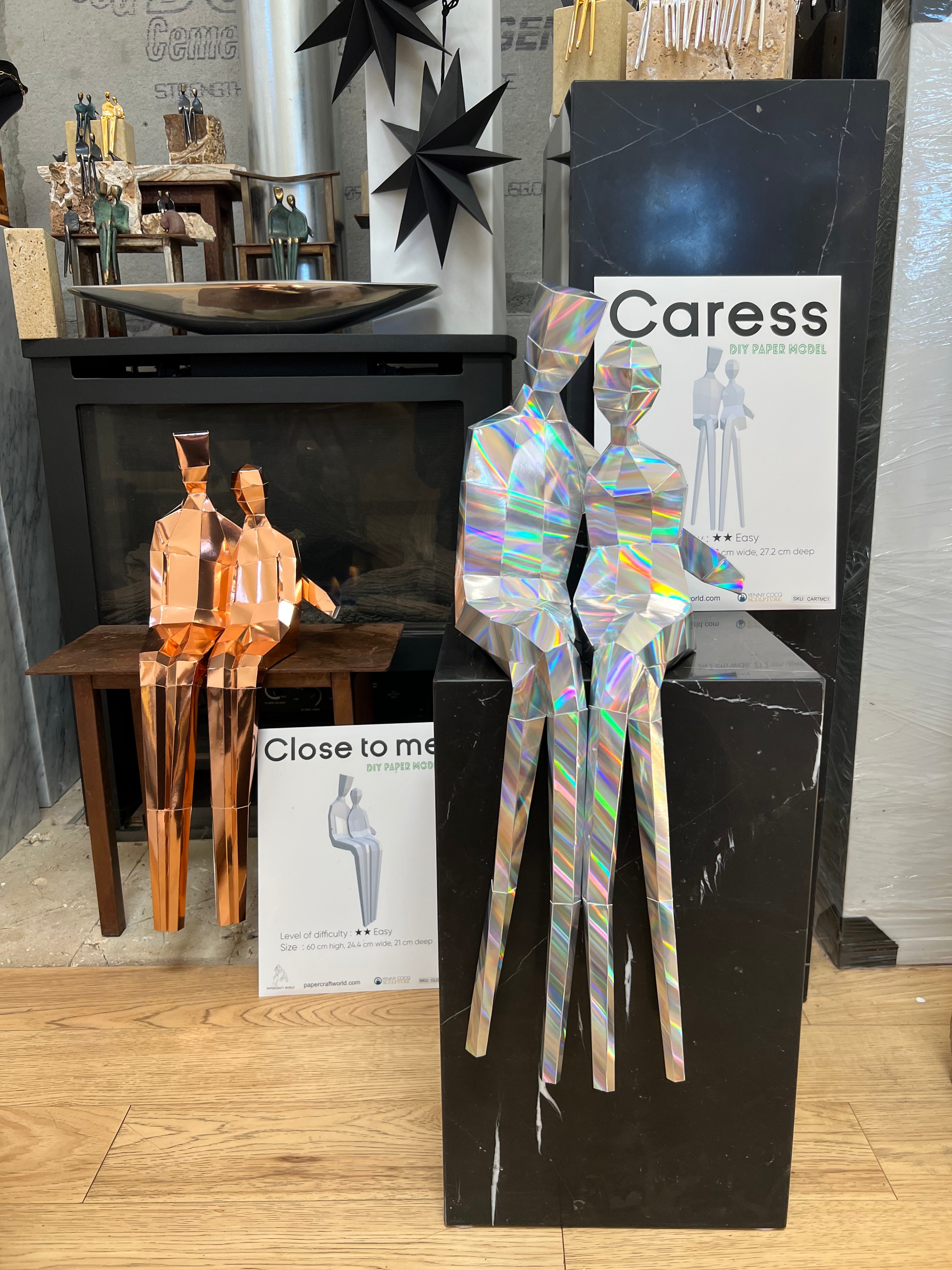 A meticulously handcrafted collectible paper sculpture designed to evoke warmth, intimacy, and artistic charm. Titled *Caress* and *Close to Me*, these delicate creations are crafted with precision-cut paper layers, each piece thoughtfully arranged to capture the essence of connection and tenderness. Finished with a soft, textured elegance, these sculptures rest gracefully on a minimalist wooden or acrylic base, making them perfect for desks, shelves, or spaces that inspire reflection. Whether as a personal treasure or a heartfelt gift, *Caress* and *Close to Me* are timeless symbols of love, closeness, and the beauty of human connection.